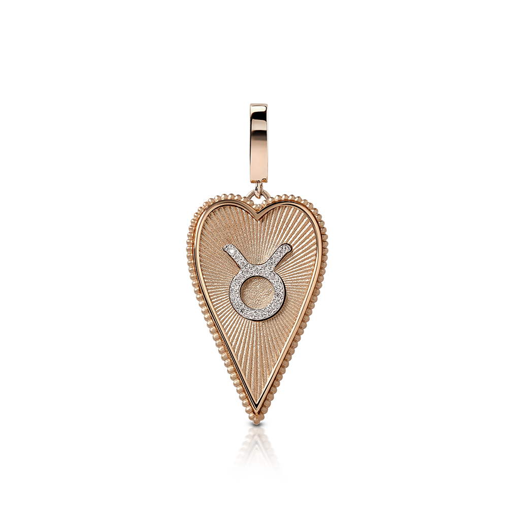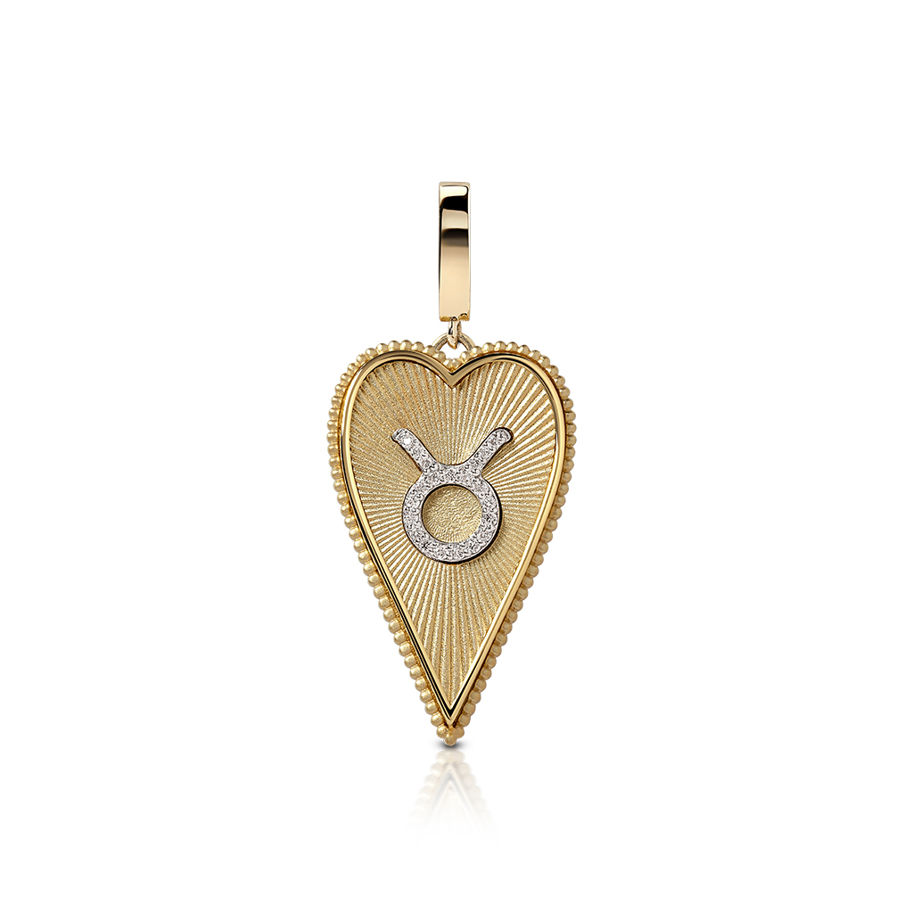 Elongated Heart Charm with Taurus Zodiac Motif