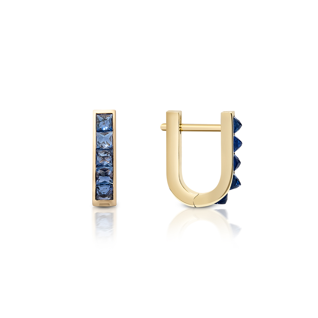 Be Spiked Collection is a line with sleek, elegant jewels featuring princess-cut diamonds or sapphires with an inverted setting.
