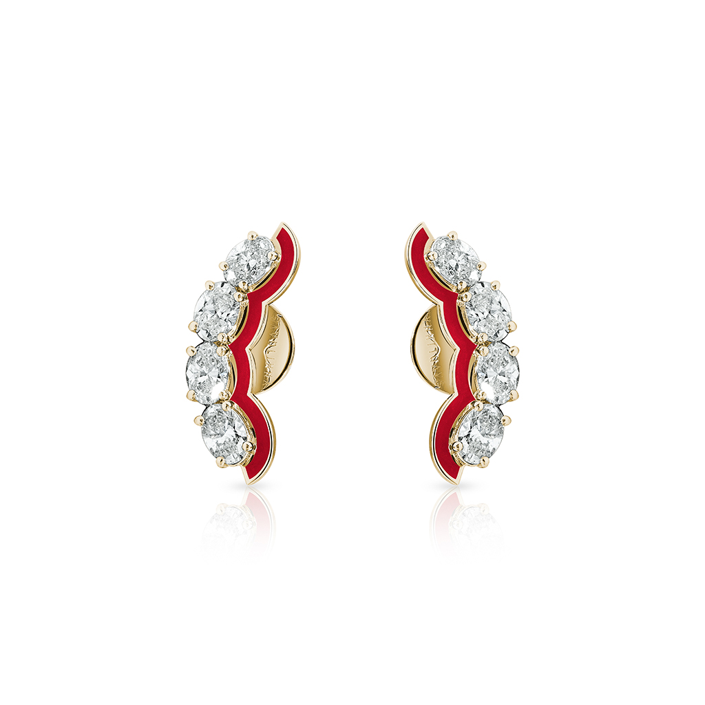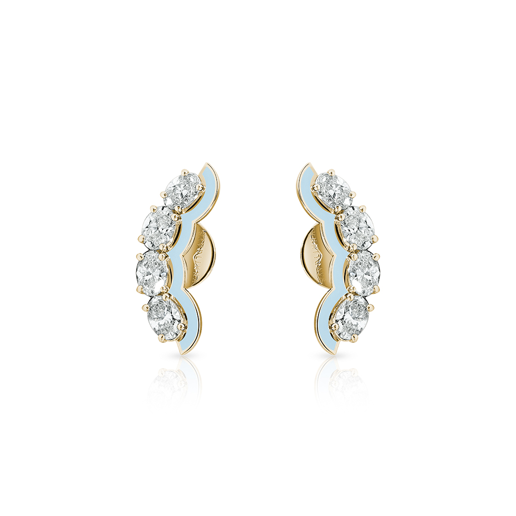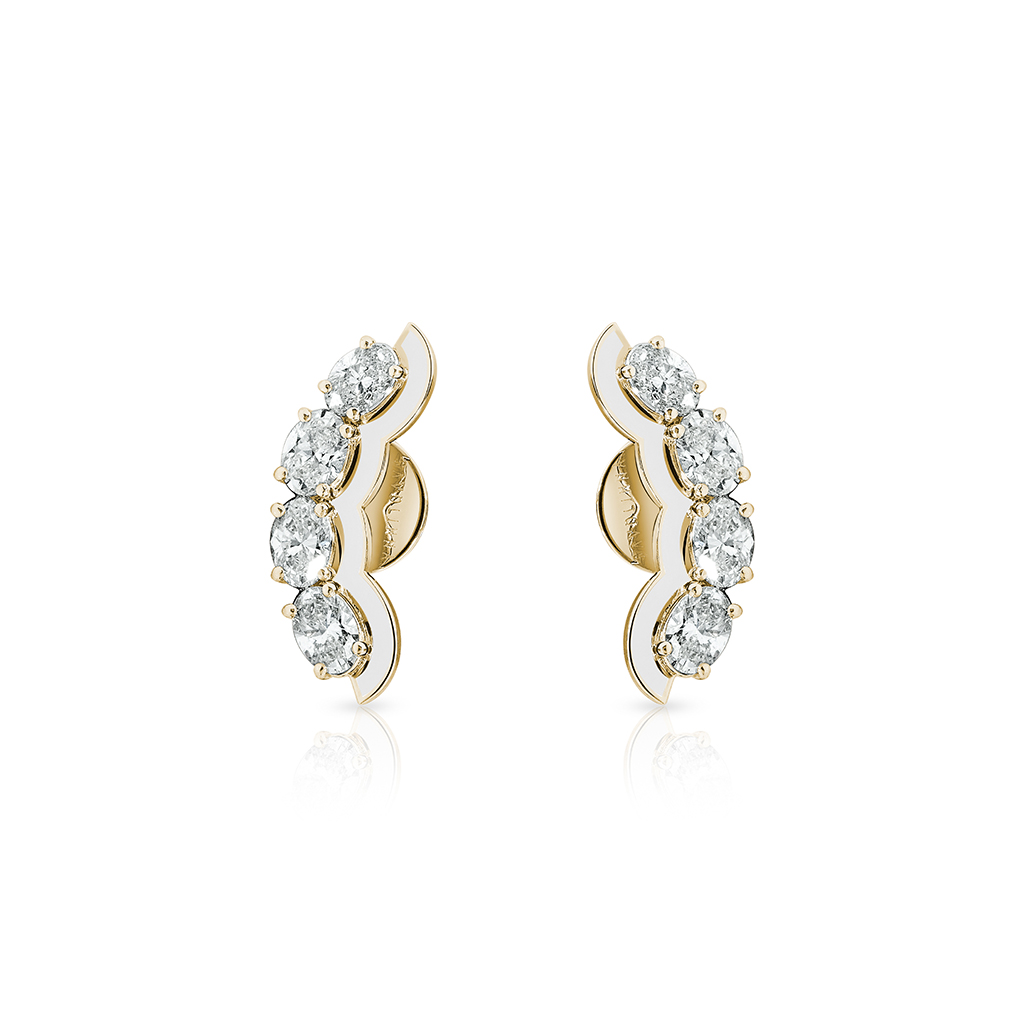 Earrings crafted in 18k gold and set with oval-shaped diamonds framed by enamel inlay.
