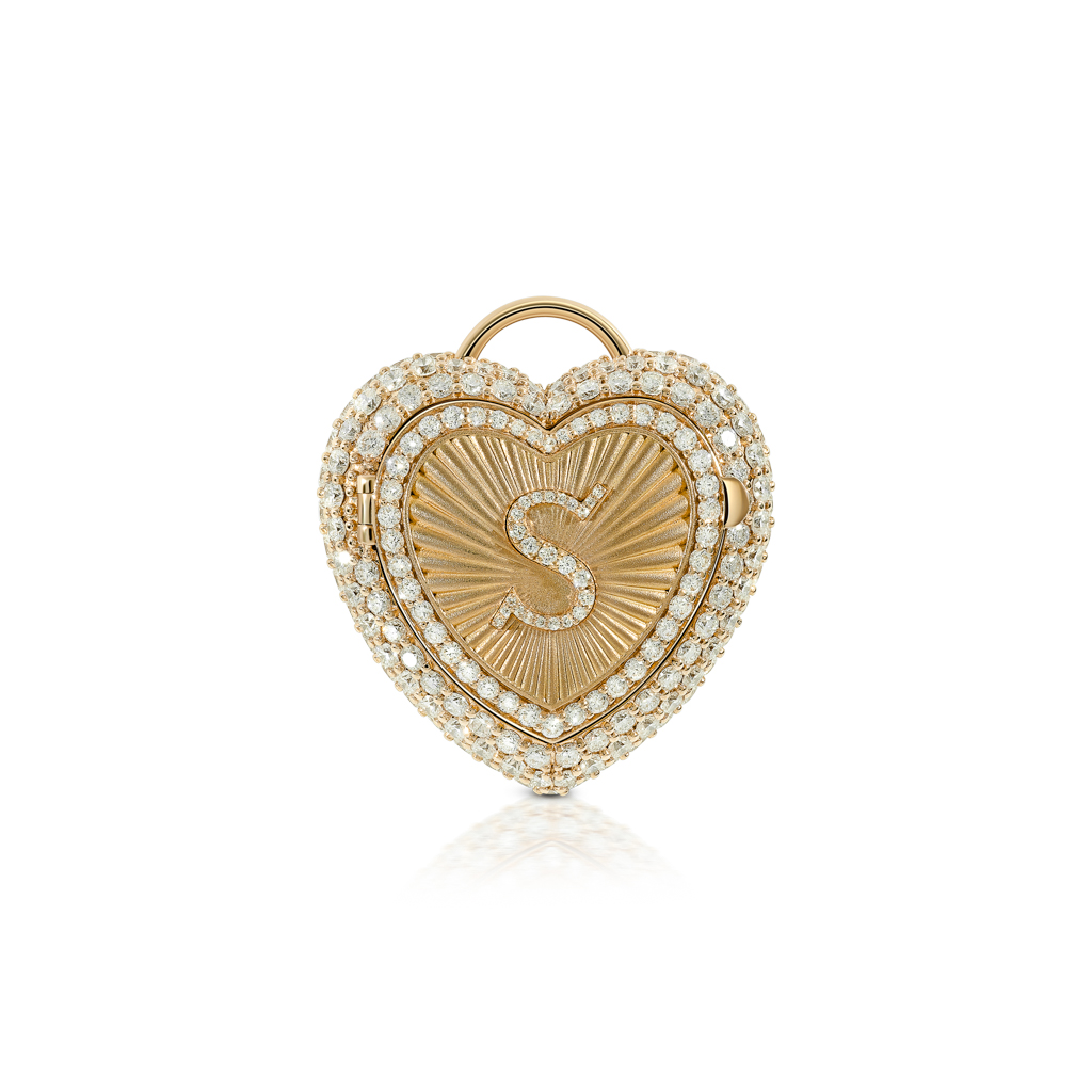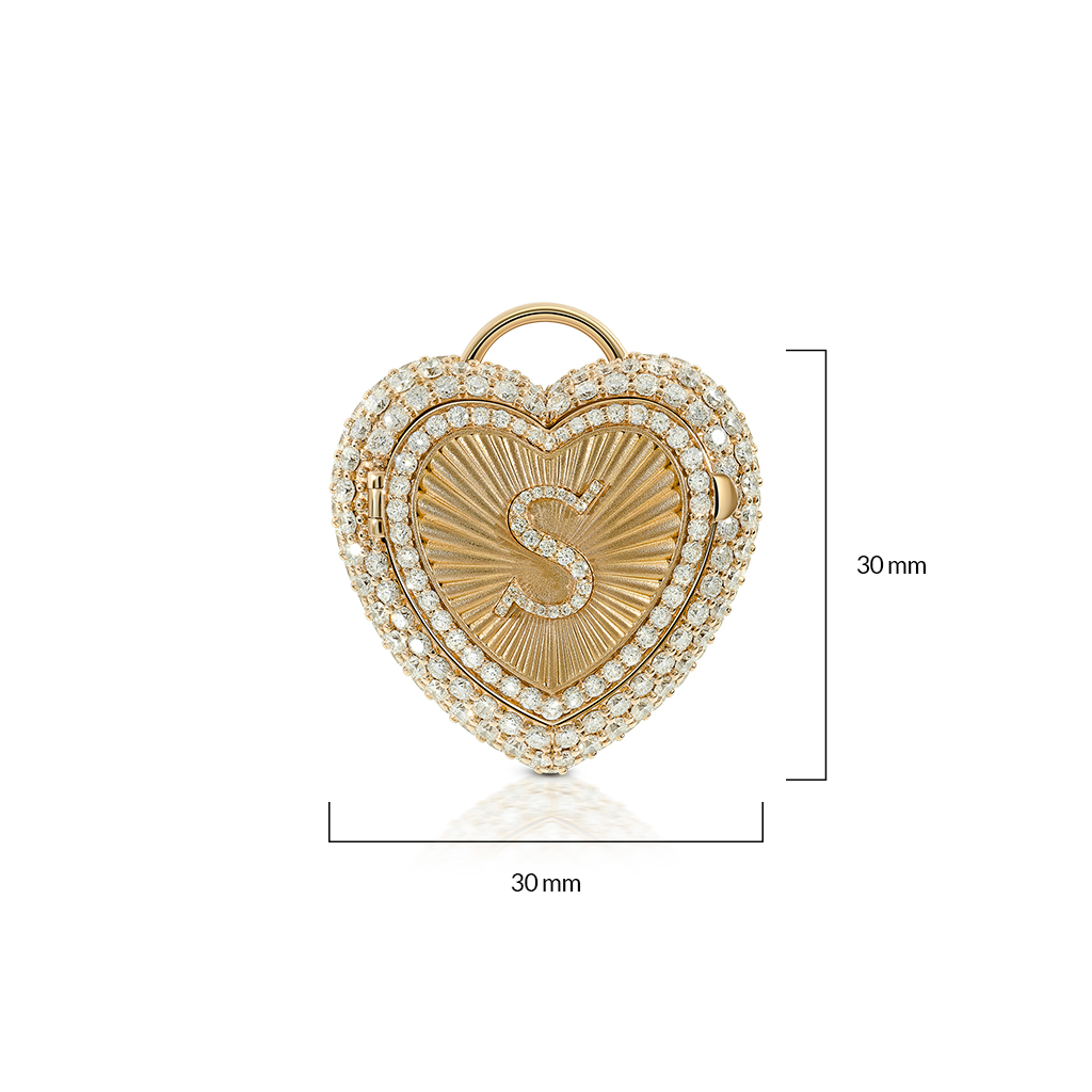 Crafted in 18k gold and set with natural brilliant-cut diamonds, this heart-shaped charm locket combines precision craftsmanship with a fully personalized design. Created with a concealed compartment, it opens to hold a miniature photo, note, or symbolic keepsake, making it both decorative and meaningful.